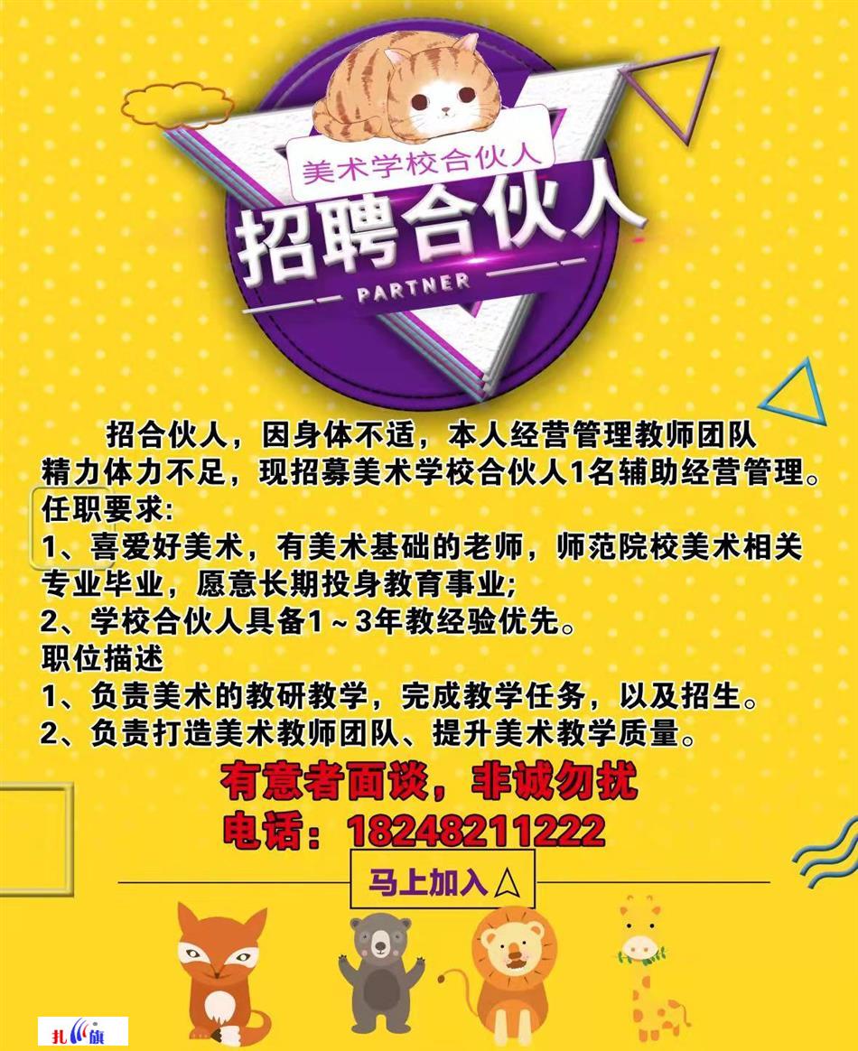 招合伙人,因身体不适,本人经营光临教师团队精力体力不足,现招募美术学校合伙人1名辅助经营管理。